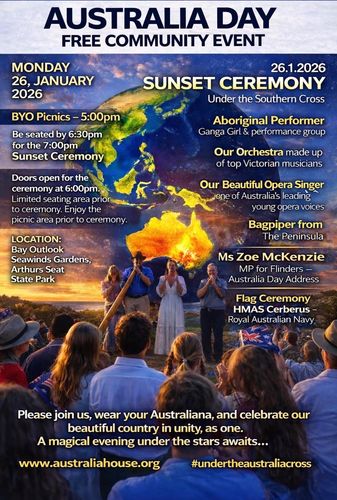 The Australia Day Picnic from 5pm to 9pm on the lawn next to the "Bay Lookout" at Seawinds Gardens - Arthurs Seat State Park