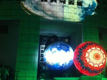 I started doing exhibitions of 12 meter diameter internally illuminated Planets in 2000